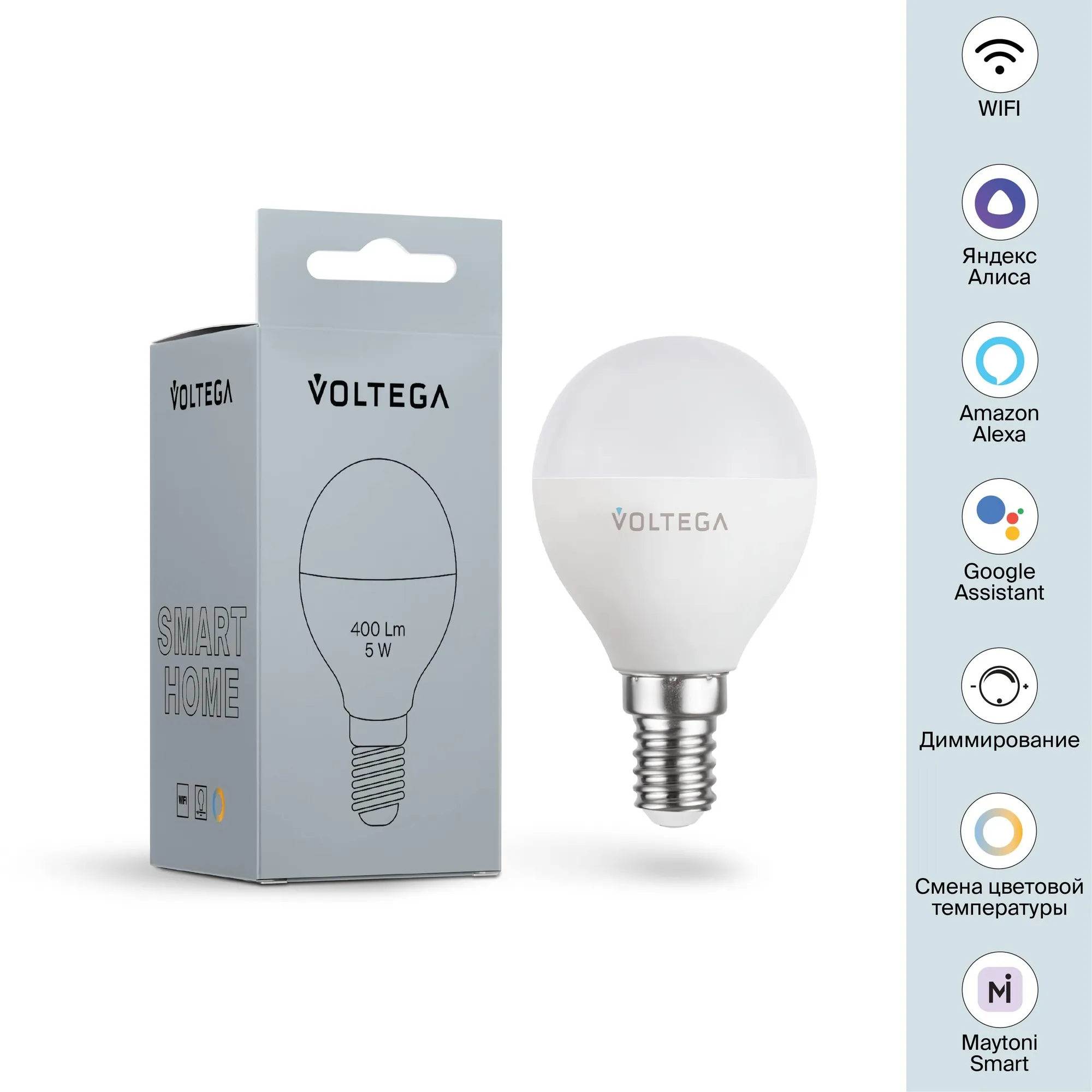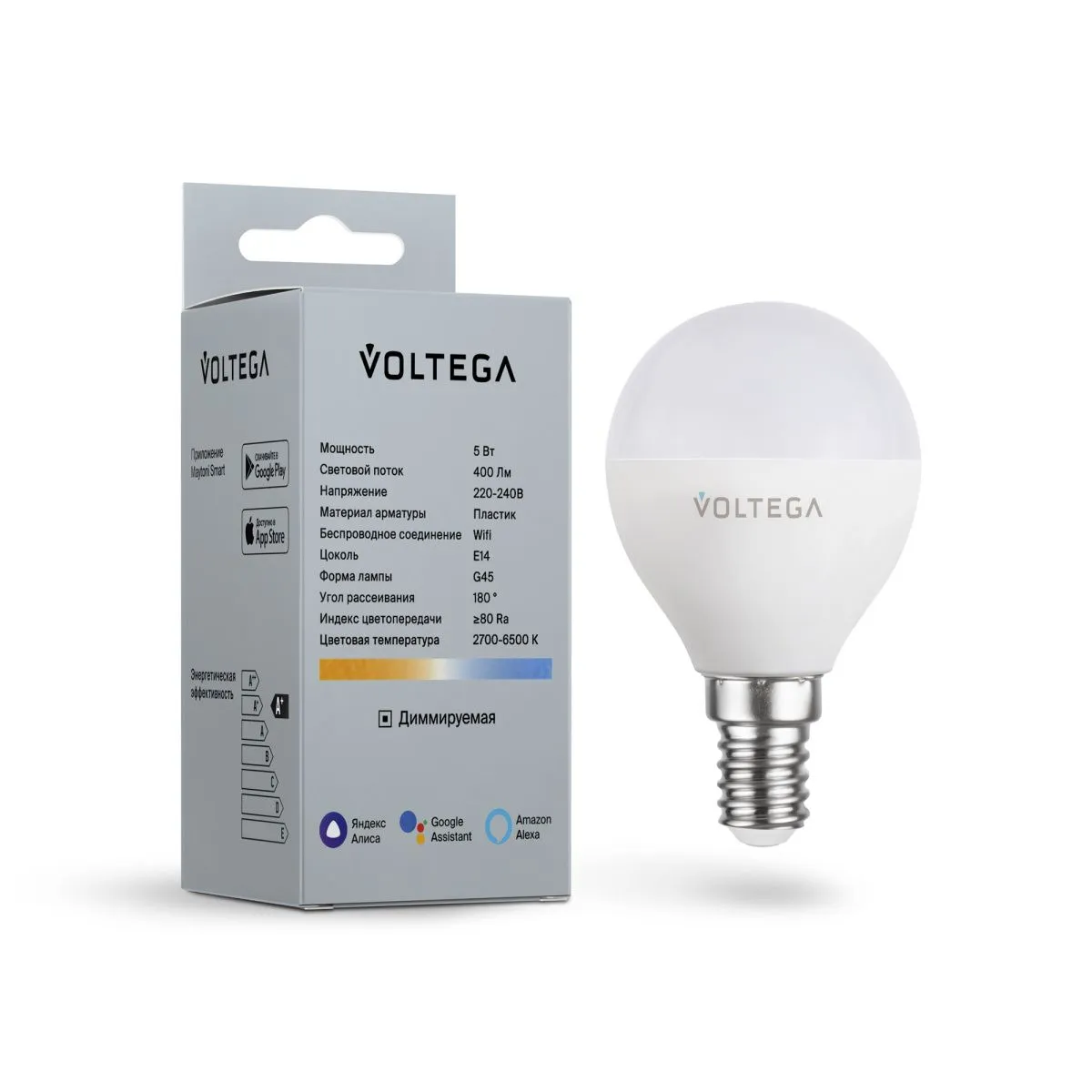 Лампа светодиодная диммируемая Voltega E14 5W 2700К матовая VG-G45E14cct-WIFI-5W 2428 купить в Томске по лучшей цене