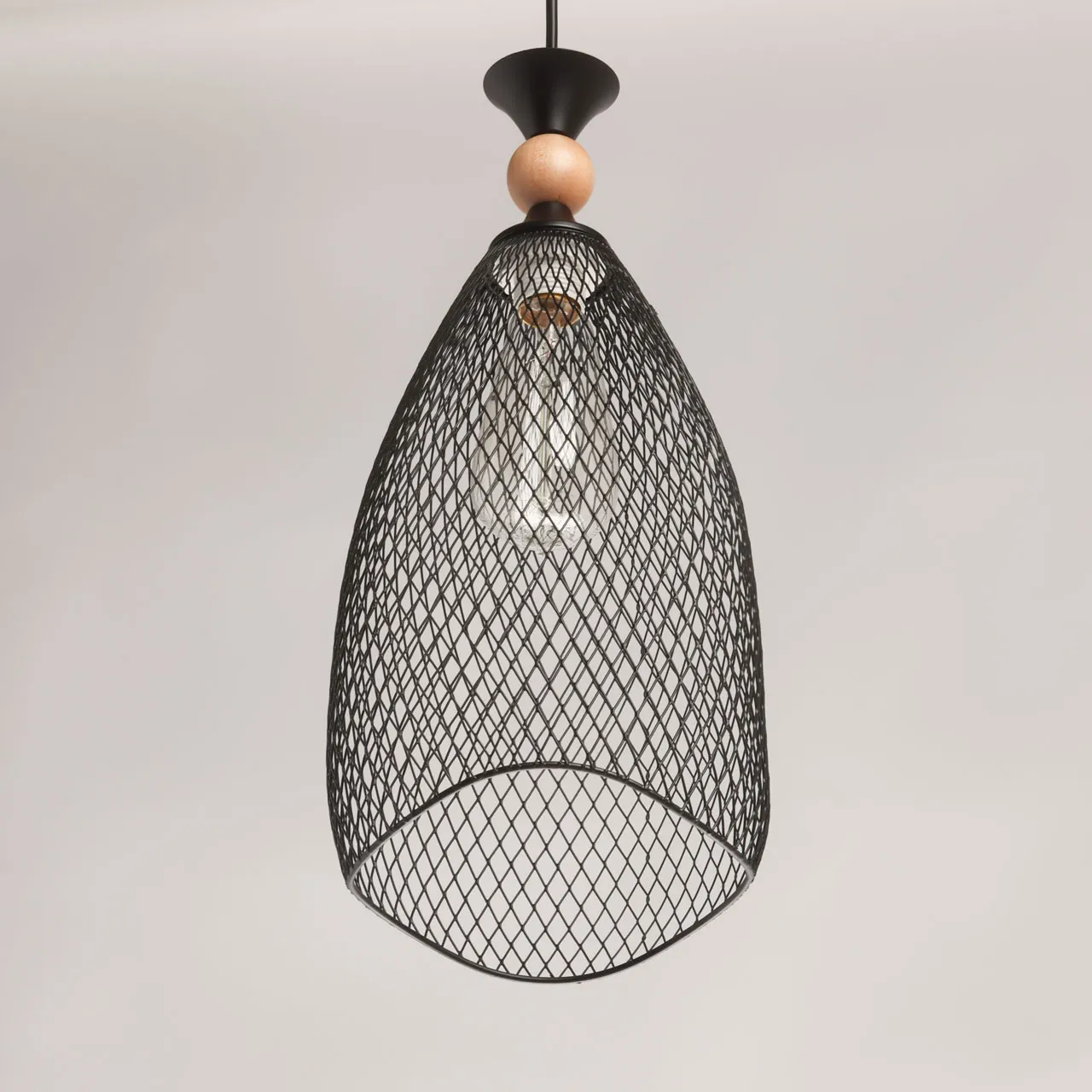 Основание/ металл/ черный Плафон/ металл/ черный Декор/ дерево/ светлый