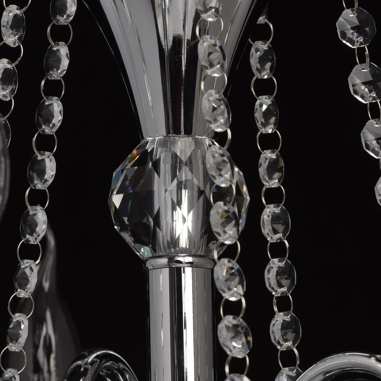 Металлическое основание цвета хрома. Декор - хрусталь, высокого качества.