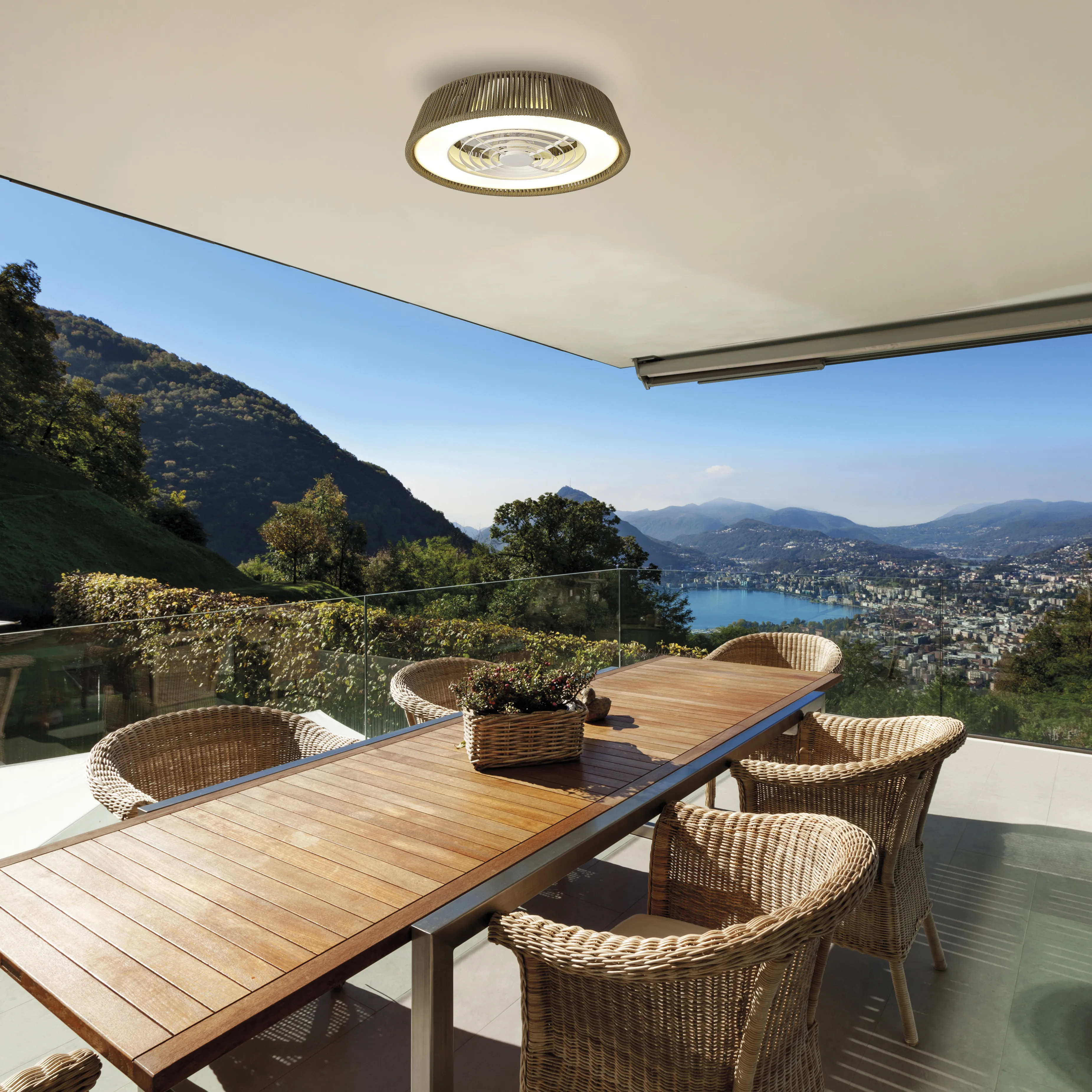 Благодаря возможности устанавливать различные интенсивности света и вентиляции, светильник POLINESIA может быть размещен в больших помещениях, таких как гостиная или офис, кухня или игровая з