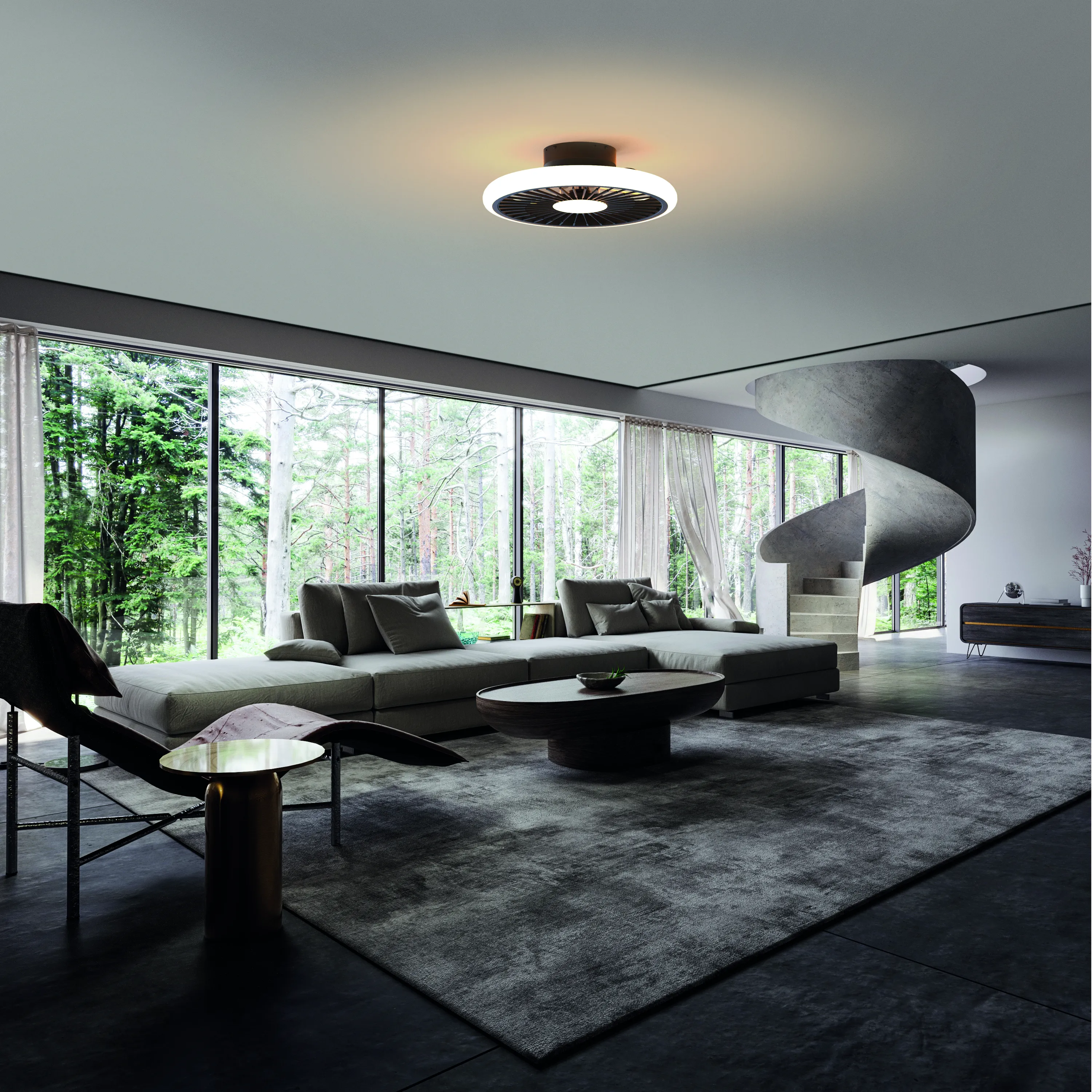 коллекция идеально подходит для спален, благодаря своему тихому, но эффективному двигателю. Вентилятор мощностью 30 Вт установлен за сеткой с замысловатым узором, напоминающим рисунок автомобильного диска . Благодаря возможности TURBO устанавливать различные интенсивности света и вентиляции, он может быть размещен в больших помещениях, таких как гостиная или офис, кухня или игровая зона. Настройки, такие как цветовая температура и скорости двигателя, могут быть изменены с помощью пульта дистанционного управления.