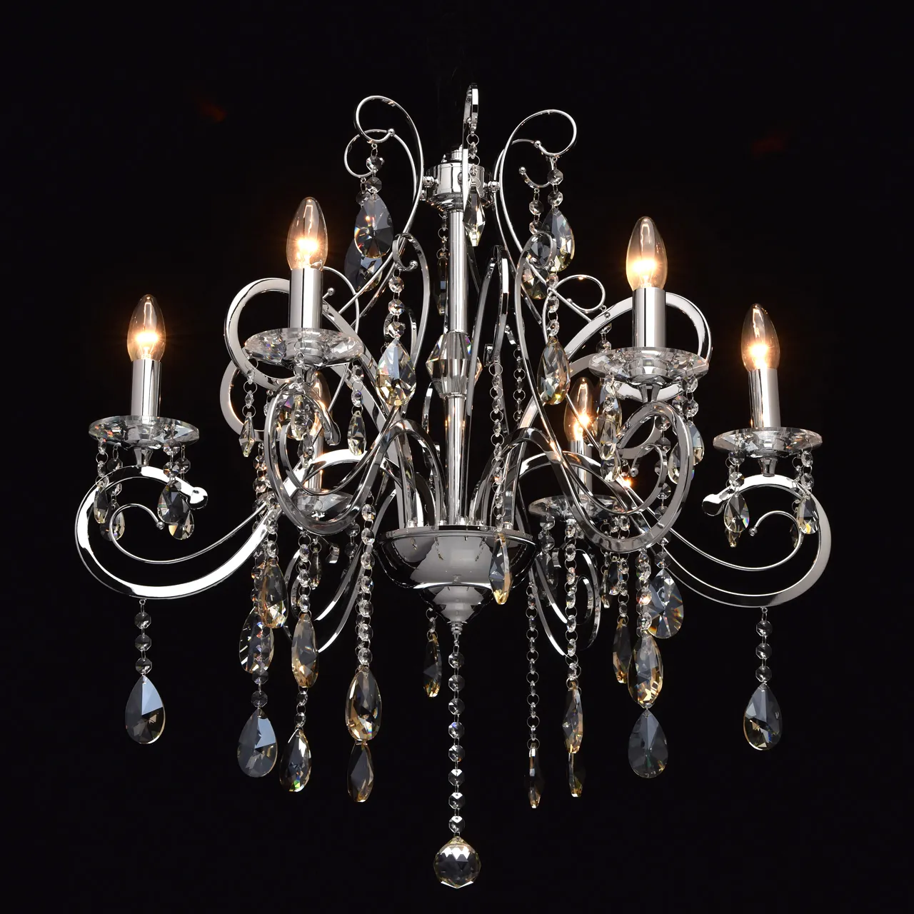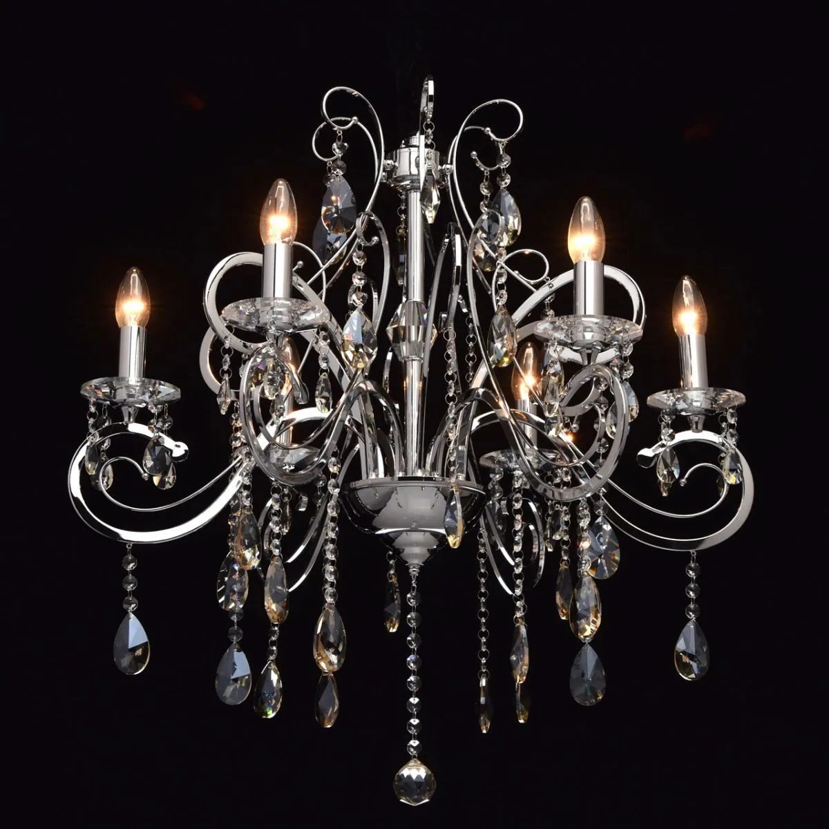 Металлическое основание цвета хрома, декоративные подвески из хрусталя