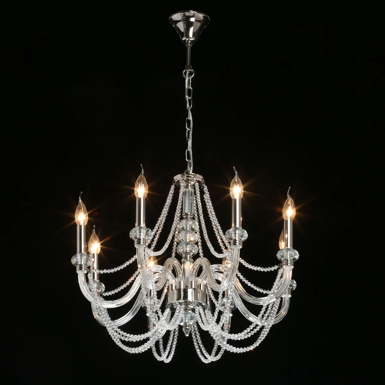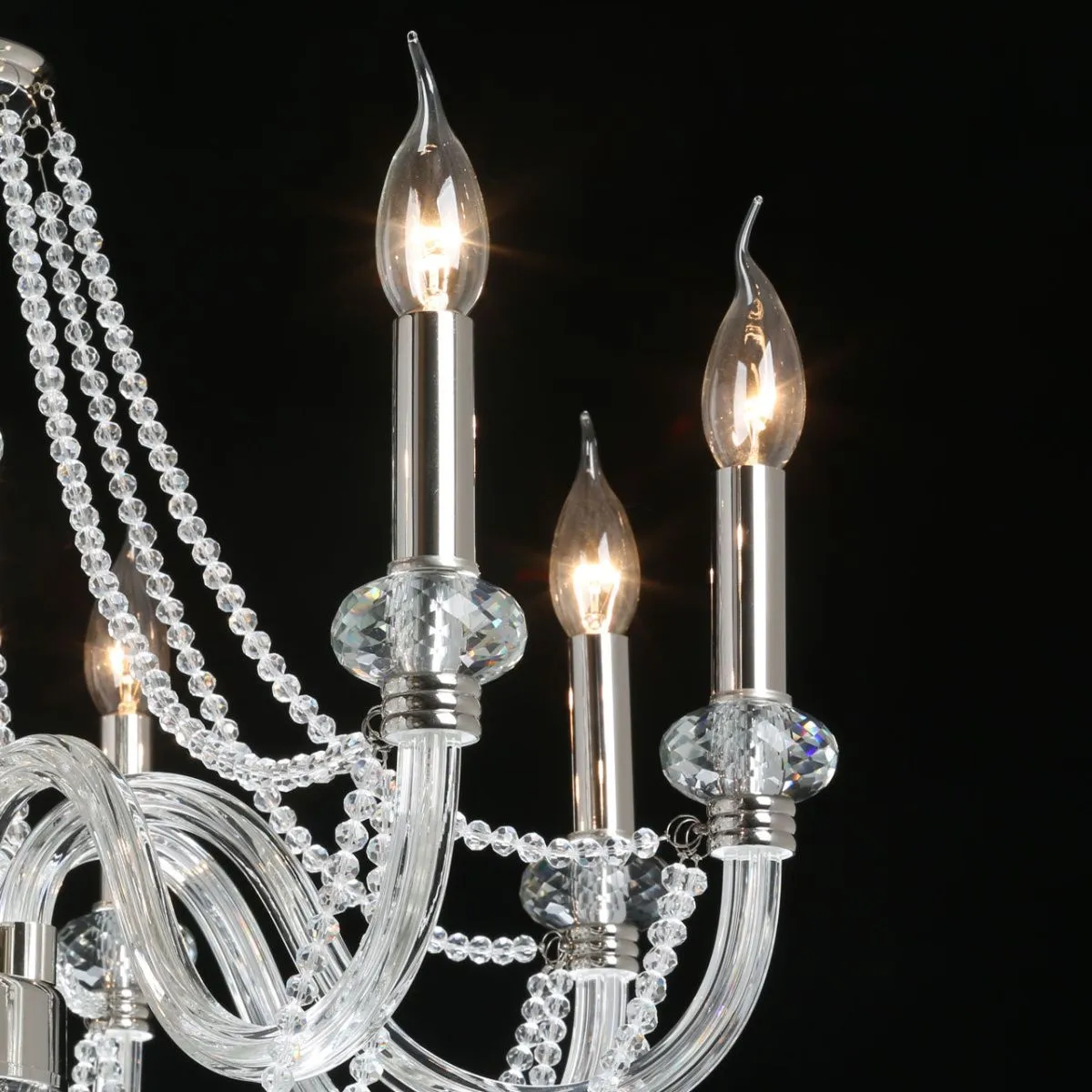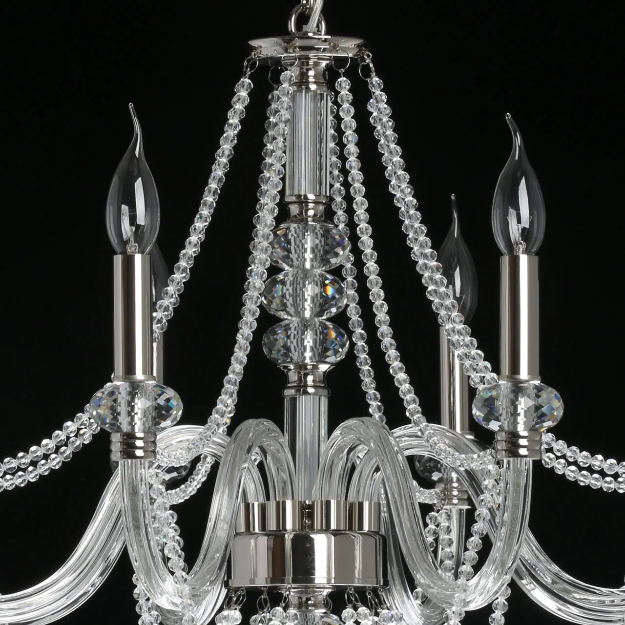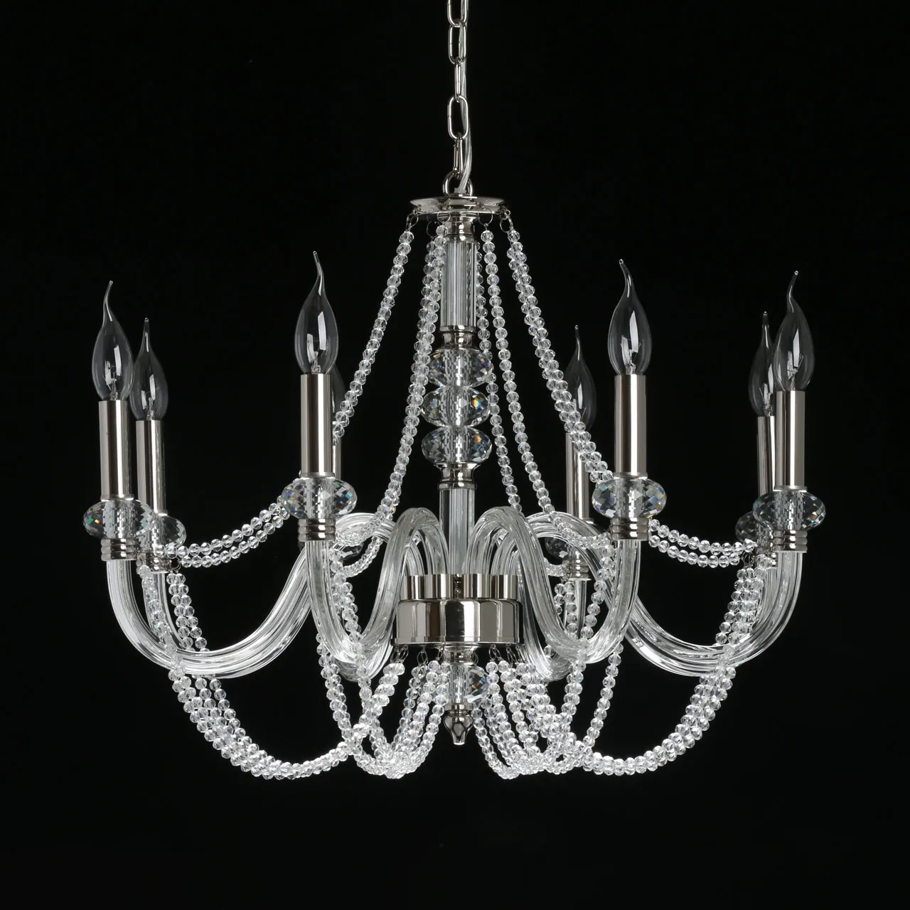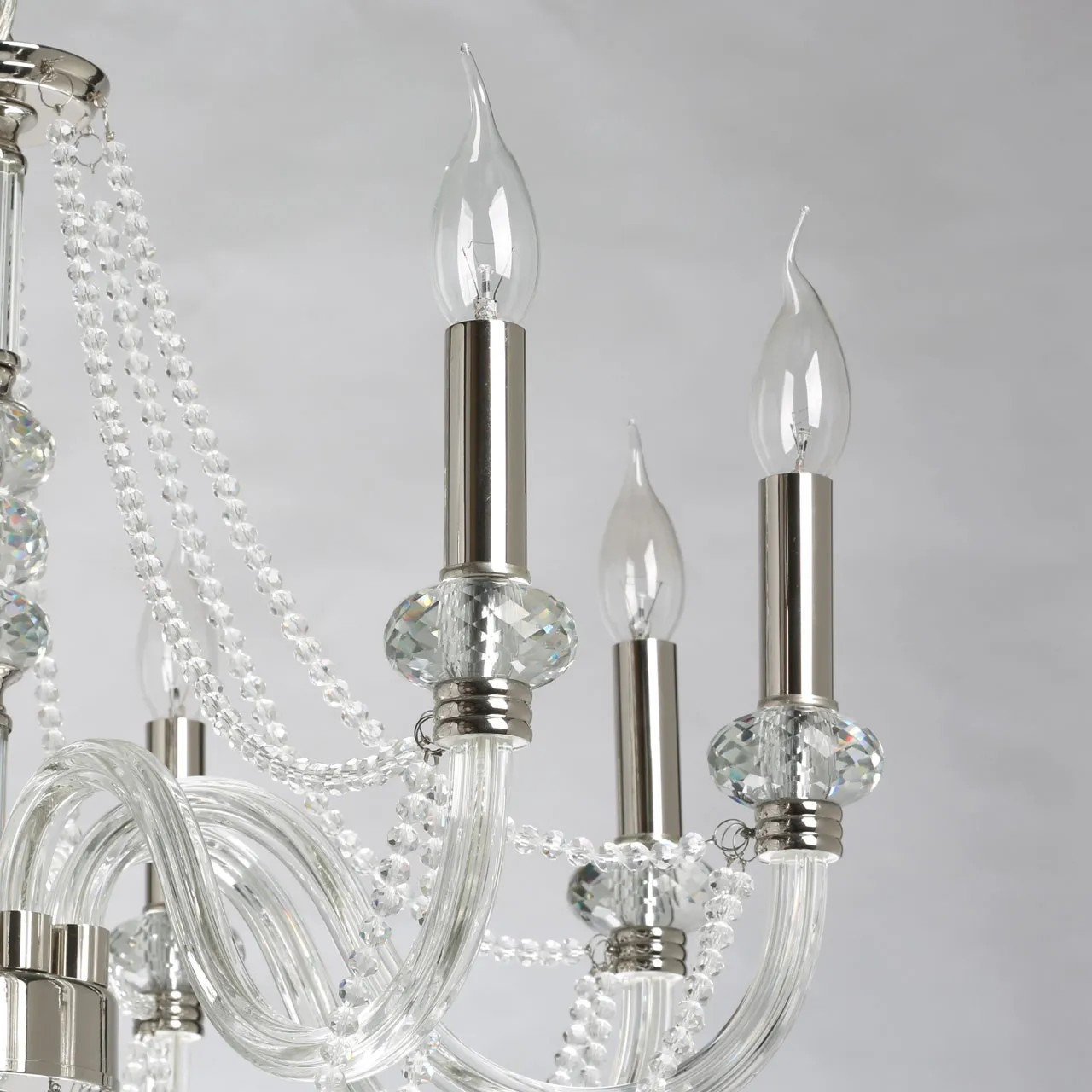 Основание/ металл, стекло/ никель, прозрачный Декор/ хрусталь, стекло/ прозрачный
